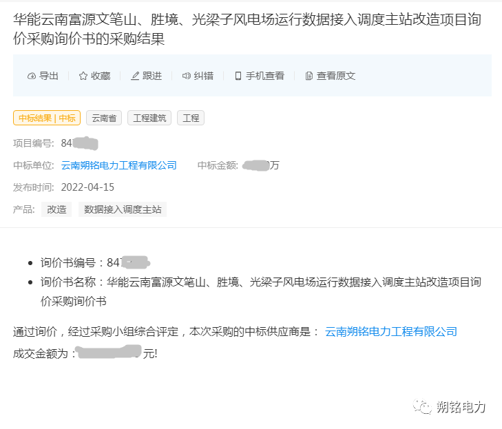 朔銘電力市場(chǎng)部再傳捷報(bào),成功中標(biāo)----華能云南富源文筆山、勝境、光梁子風(fēng)電場(chǎng)運(yùn)行數(shù)據(jù)接入調(diào)度主站改造項(xiàng)目詢價(jià)采購(gòu)詢價(jià)書(shū),華能富源文筆山、勝境、光梁子風(fēng)電場(chǎng)位于云南省曲靖市富源縣,文筆山、勝境風(fēng)電場(chǎng)位于云南省曲靖市富源縣中安鎮(zhèn),距離富源城區(qū)約20公里,光梁子風(fēng)電場(chǎng)位于云南省曲靖市富源縣后所鎮(zhèn),距離富源城區(qū)約40公里,海拔在2700m之間。該項(xiàng)目主要完成華能富源文筆山、勝境、光梁子風(fēng)電場(chǎng)運(yùn)行數(shù)據(jù)接入調(diào)度主站改造工作。
