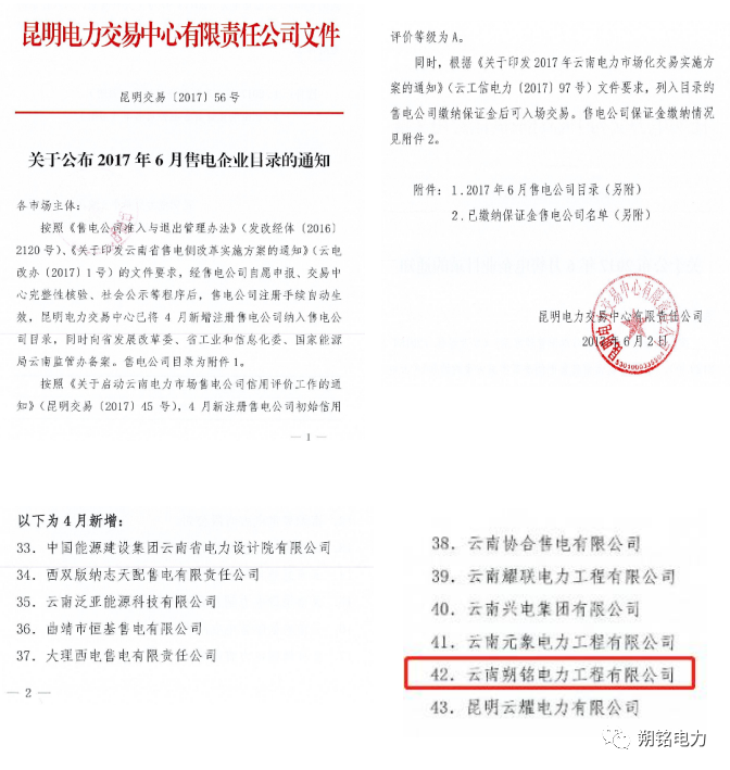 云南朔銘電力工程有限公司秉承“朔于滇,銘天下”的宗旨,立足于電力新能源及電力工程建設(shè)的同時,于2017年1月,在新一輪電力體制改革背景下,成功取得售電資質(zhì),是云南省內(nèi)較早取得電力售電資質(zhì)的私營企業(yè)之一。